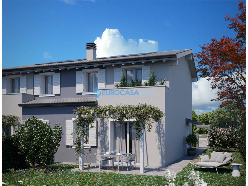 CORTILE, CARPI VILLETTA IN BIFAMILIARE DI NUOVA COSTRUZIONE IN CLASSE A2, GIARDINO PRIVATO! Abitazione di qualità con ottime caratteristiche in termini di efficienza energetica e antisismica. La casa è disposta su due piani, al piano terra, troviamo una spaziosa area living di oltre 40 mq in openspace con cucina a vista e accesso al grazioso giardino. Un bagno finestrato, un garage collegato e un posto auto privato. Il piano superiore è caratterizzato da un bellissimo tetto in legno sbiancato a vista e dispone di un disimpegno con spazio per un ampio armadio a muro, 3 camere da letto, di cui 2 con balcone, e un bagno. Le caratteristiche salienti di questa proprietà includono il riscaldamento a pavimento con pompa di calore, un impianto fotovoltaico, infissi in PVC e diverse predisposizioni per allarme e addolcitore. Questa è un'opzione ideale per chi desidera un'abitazione indipendente in classe energetica A, costruita con tecniche all'avanguardia da un'impresa con una comprovata esperienza. Inoltre, si ha la possibilità di personalizzare le finiture secondo i vostri gusti e desideri. Per ulteriori informazioni, capitolato e prenotazione visite potete chiamare il nostro ufficio oppure inviare una mail. Rich. € 345.000 Rif. V0281 - Eurocasaimm Agenzie Immobiliari.CarpiDue - Via Etna 12 Carpi (MO) Tel.: 059/645023 - carpi@eurocasaimm.com - www.eurocasaimm.com