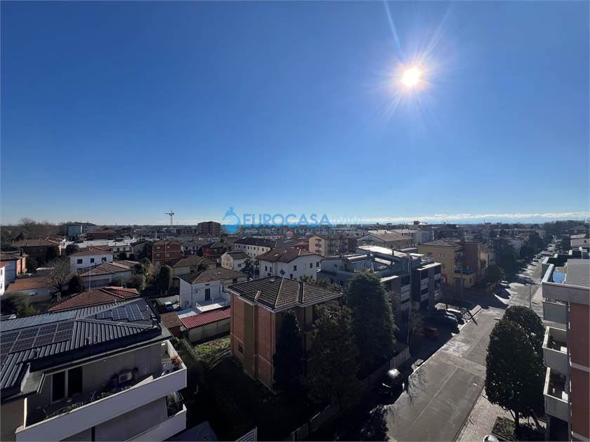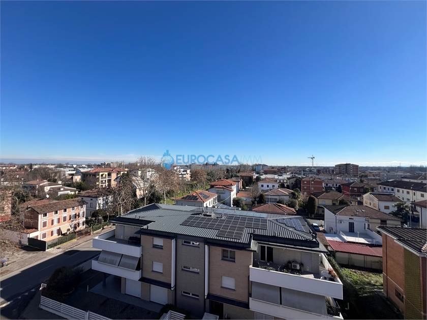 CARPI, GRAZIOSO APPARTAMENTO CON BELLISSIMA VISTA SULLA CITTA', LUMINOSO ED IN OTTIME CONDIZIONI. Posto al quinto piano con ascensore, con due ampi balconi che affacciano ad est ed a ovest che godono di una bellissima vista aperta, è composto da ingresso su soggiorno ed armadio a muro, cucina abitabile, disimpegno notte, due camere matrimoniali, bagno. Al piano interrato garage di proprietà. L'appartamento è stato oggetto di ristrutturazione completa negli anni 2000, la caldaia ed il climatizzatore canalizzato in pompa di calore sono stati cambiati nel 2024! Utenze autonome, basse spese di gestione e basse spese condominiali. LIBERO SUBITO! Rich. € 163.000 Rif. V0588 - Eurocasaimm Agenzie Immobiliari Carpi, via Etna n. 12-14, tel. 059/645023 - carpi@eurocasaimm.com - www.eurocasaimm.com