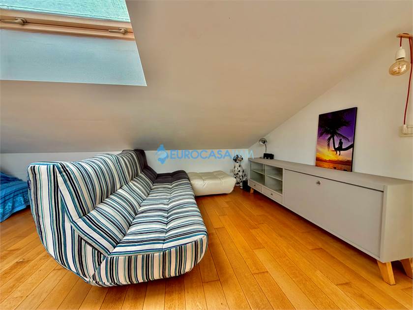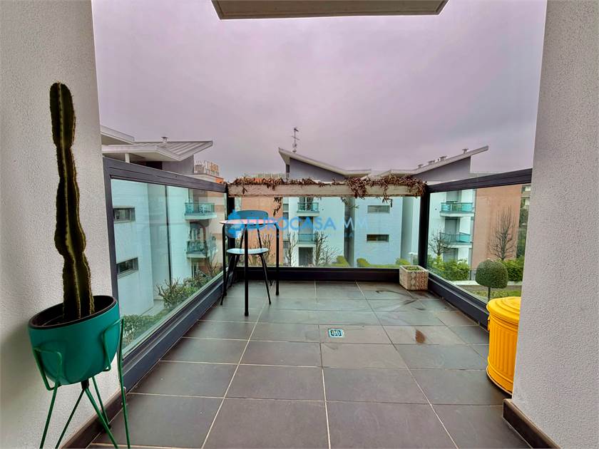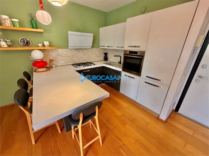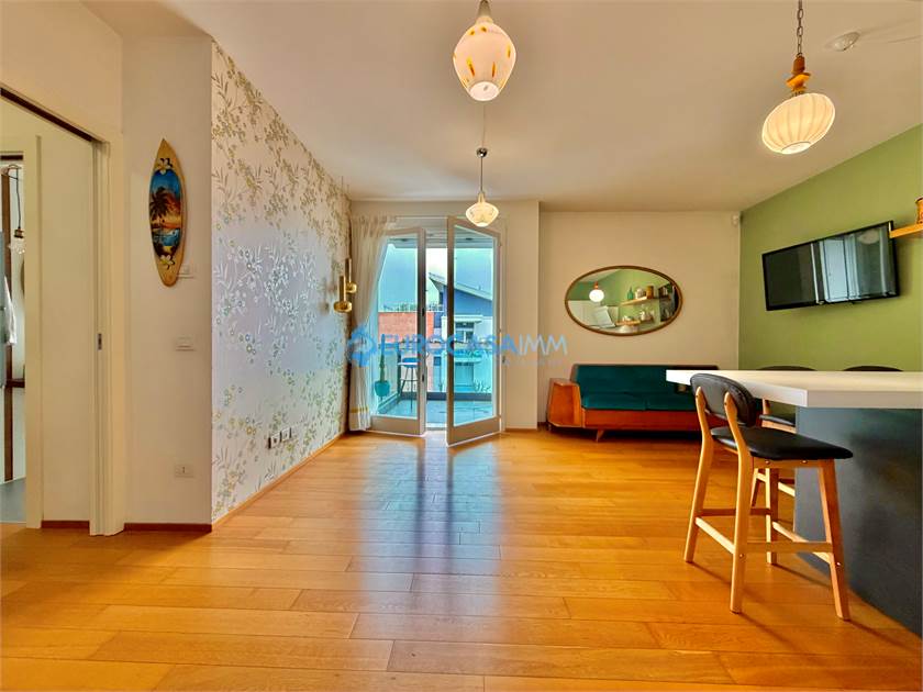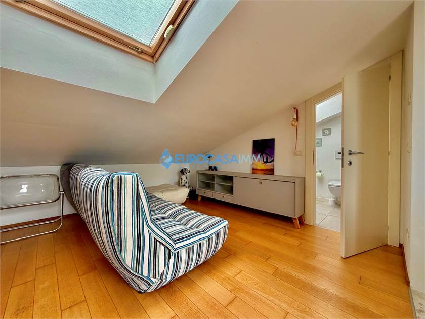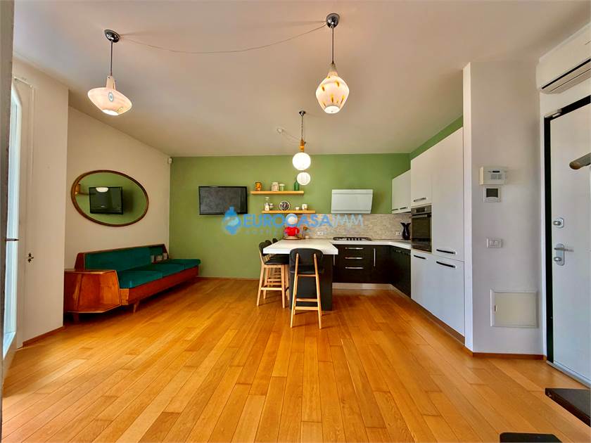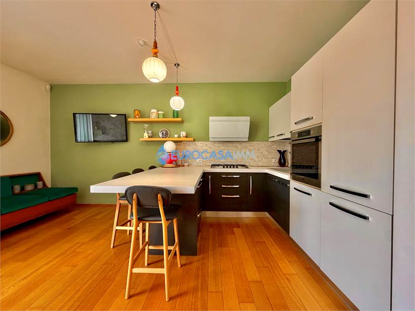SAN MARINO DI CARPI, ATTICO/DUPLEX. In una zona residenziale tranquilla e ben collegata di Carpi, proponiamo in vendita elegante attico su due livelli situato al secondo ed ultimo piano con ascensore, in Strada Statale Motta. L’abitazione, di circa 110 mq, si distingue per ambienti luminosi, finiture moderne e una piacevole continuità tra spazi interni ed esterni, grazie alla presenza di balcone e ampio terrazzo vivibile. L’ingresso si apre sulla zona giorno, accogliente e ben distribuita, con soggiorno e cucina a vista completamente attrezzata. Da qui si accede al balcone con affaccio sul giardino interno, perfetto come spazio relax quotidiano. Il reparto notte del piano comprende una camera matrimoniale luminosa, una camera tre quarti e un bagno finestrato con doccia, rifinito con materiali contemporanei. Dal soggiorno una scala di design conduce al piano mansardato, uno spazio indipendente e versatile ideale come terza camera, studio o zona privata. Su questo livello troviamo anche un secondo bagno con vasca idromassaggio, pensato per garantire il massimo comfort. La mansarda si affaccia su un ampio terrazzo attrezzato con cucina esterna, perfetto per pranzi e cene all’aperto, momenti conviviali o relax nelle stagioni più calde. Le finiture interne sono curate: parquet nei principali ambienti, bagni in ceramica, infissi in legno bianco con doppio vetro, tapparelle elettriche, porta blindata e addolcitore. L’immobile è dotato di riscaldamento a pavimento e climatizzazione con pompa di calore, per un comfort ottimale tutto l’anno. Completano la proprietà un garage al piano interrato con accesso da cancello elettrico condominiale e parte dell’arredo compreso nel prezzo, tra cui cucina, armadiature e zona attrezzata del terrazzo.