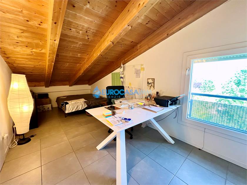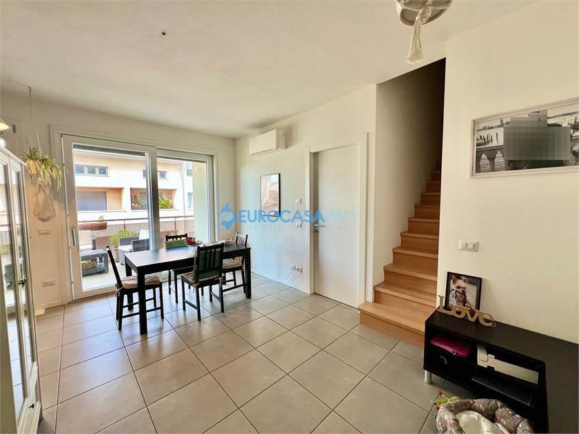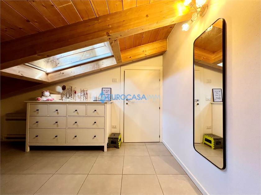 ROVERETO S/S, BELLISSIMO APPARTAMENTO DUPLEX DI RECENTE COSTRUZIONE IN CLASSE A3! In piccola palazzina situata in zona residenziale molto tranquilla, adiacente a zone verdi e ciclopedonali, proponiamo in vendita soluzione abitativa posta al secondo e terzo piano, composta da ingresso su zona giorno con angolo cottura, terrazza ideale per piacevoli momenti di relax all'aperto, disimpegno con ripostiglio, camera matrimoniale (attualmente adibita a soggiorno), studio, bagno ed al piano sovrastante (ad uso soffitta/stenditoio/lavanderia) caratterizzato da un caldo tetto in legno a vista, troviamo una stanza finestrata attualmente adibita a studio, lavanderia, altra ampia stanza attualmente adibita a camera. Garage al piano terra con collegamento diretto al vano scala. L'immobile, in classe energetica A3, è dotato di riscaldamento a pavimento, impianto fotovoltaico per le parti comuni, pannelli solari termici, doppio clima con pompa di calore, tapparelle motorizzate, vetrata scorrevole che porta alla terrazza, videocitofono. Ottima occasione!!! Rich. € 155.000 Rif. V0528 - Eurocasaimm Agenzie Immobiliari Carpi, Via Etna n. 12-14, tel. 059/645023 - carpi@eurocasaimm.com - www.eurocasaimm.com