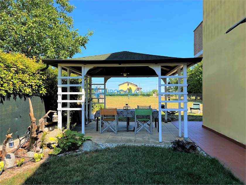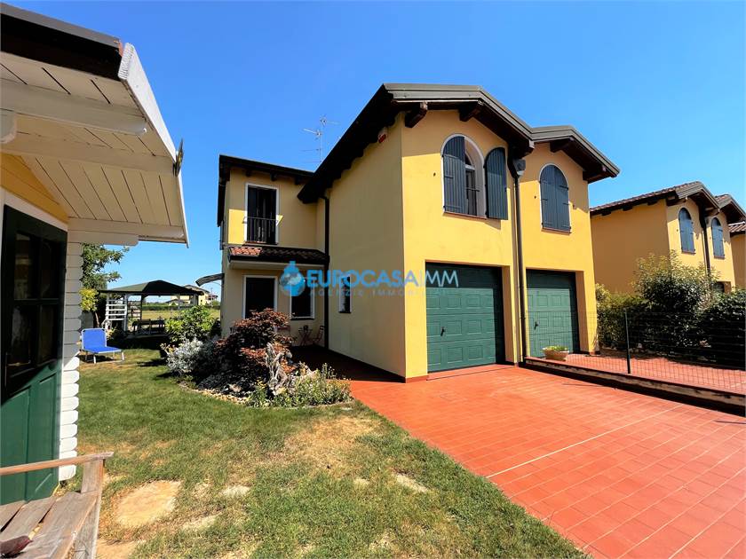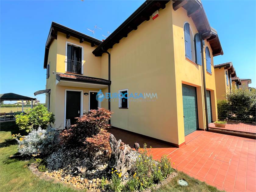 NOVI ESCLUSIVA VILLETTA DI TESTA. Eurocasaimm è lieta di presentarvi in esclusiva, stupenda villetta di testa di recente costruzione con ultimi criteri sul risparmio energetico ed antisismica. L'immobile è ubicato in bellissima zona residenziale di prestigio, con giardino privato su tre lati perfettamente tenuto, con gazebo e casetta di legno. La villetta è composta al piano terra da ingresso su soggiorno open space con cucina a vista, bagno e garage automatizzato collegato all'abitazione; tre camere da letto, bagno, ripostiglio e balcone al piano primo. Il prestigioso tetto in legno a vista prosegue in tutto l'immobile rendendo caldo ed accogliente ogni ambiente. Il riscaldamento a pavimento, clima ed alti standard abitativi, rendono questa soluzione molto interessante ed a risparmio energetico. ARREDATA CON MOBILIO COMPRESO NEL PREZZO! Rich € 255.000,00 Rif. NG110 Cl energetica B Ep 117,46 kw/mq/anno - Eurocasaimm Agenzie Immobiliari Novi - Via A. Ligabue n. 37 059/677539 328/6612841 - novi@eurocasaimm.com - www.eurocasaimm.com